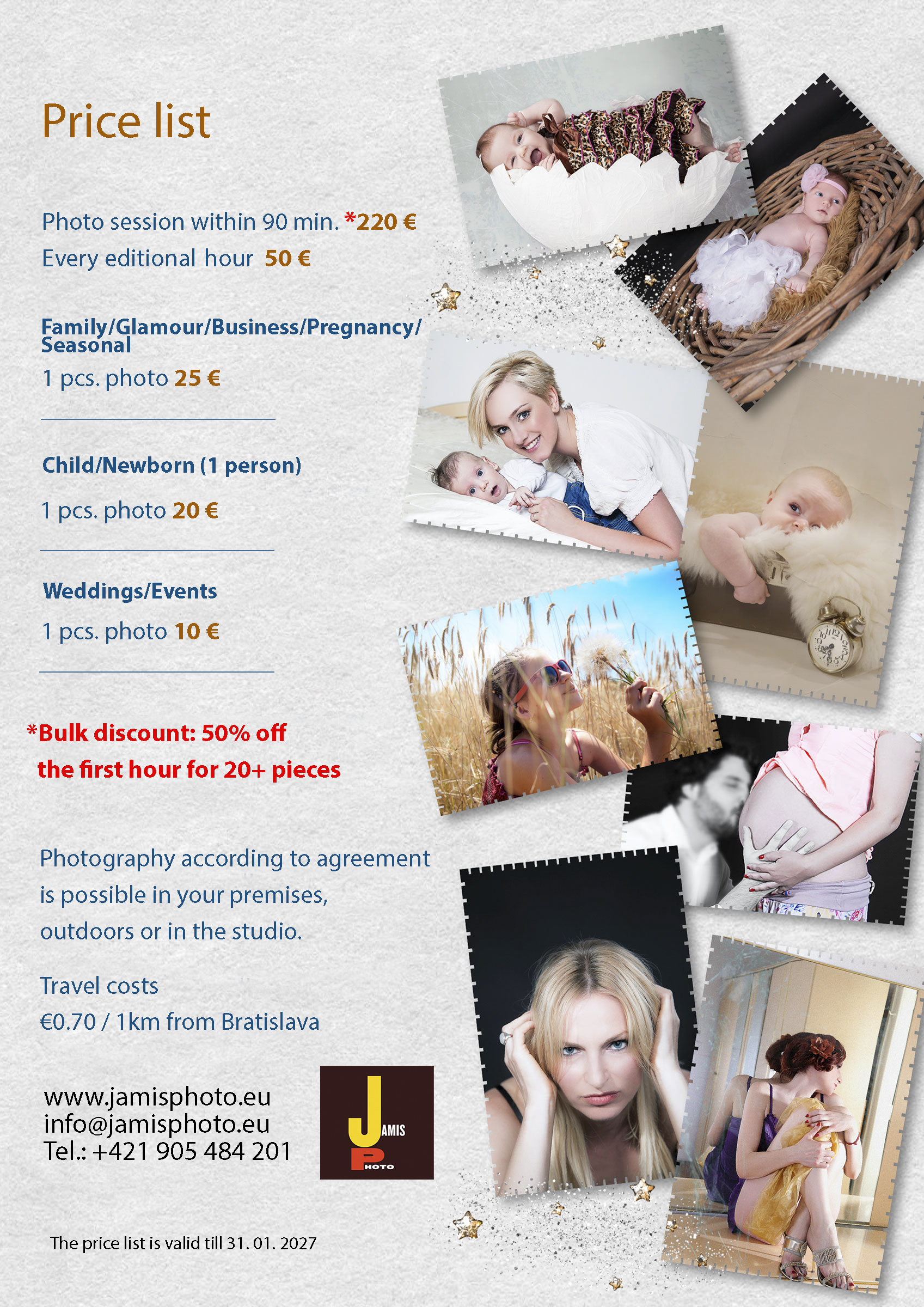 na požiadanie zabezpečujeme fotenie vo vybraných priestoroch, profesionálnu vizáž, úpravu vlasov – cenová ponuka podľa požiadaviek